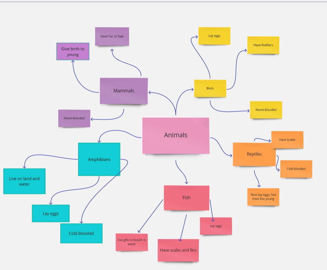 In this lesson students can explore the use of creating a concept map with a science based animal lesson. This concept can be altered to cover various age groups. Students will take a deeper look into the different traits and characteristics of different animal classes. The students will explore also learn what type of animals are warm or blooded, how they reproduce, and what their exterior is covered by. While researching about different animals they will learn how these traits help classify the animals. The use of the visual concept map is a great way to reinforce such a unique lesson.